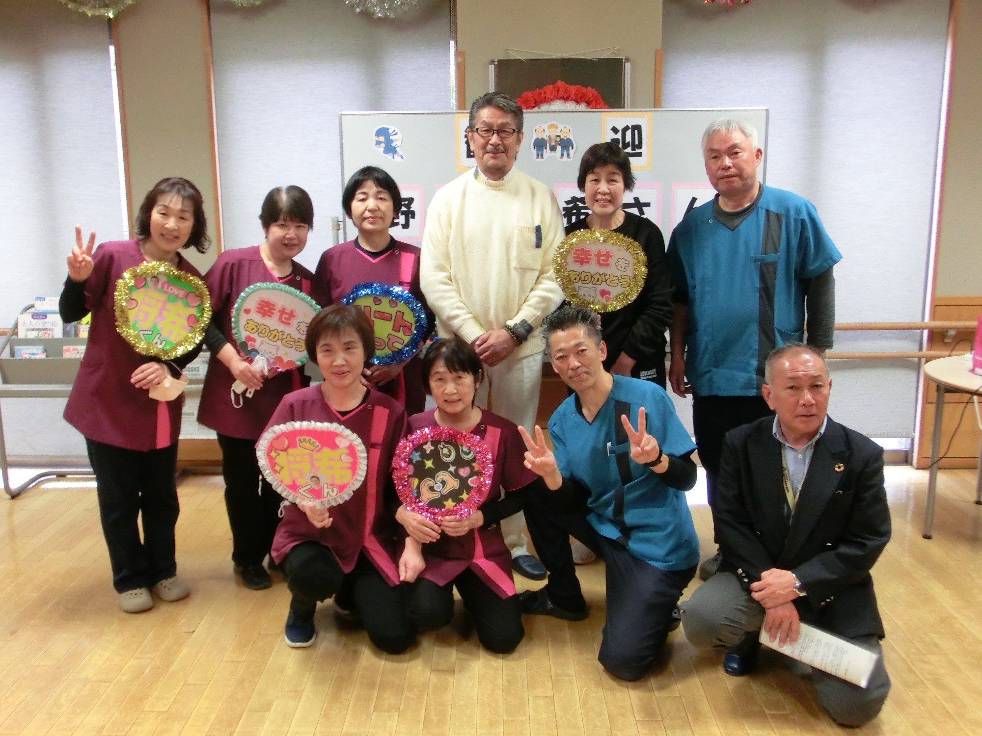 令和8年1月20日、水戸黄門「飛猿」こと野村将希さんが来所。フロアは一気に明るい雰囲気となり、利用者の皆さまは驚きながらも大喜びで、握手や会話を楽しんだり、一緒に写真を撮ったりと、笑顔あふれるひとときとなりました。